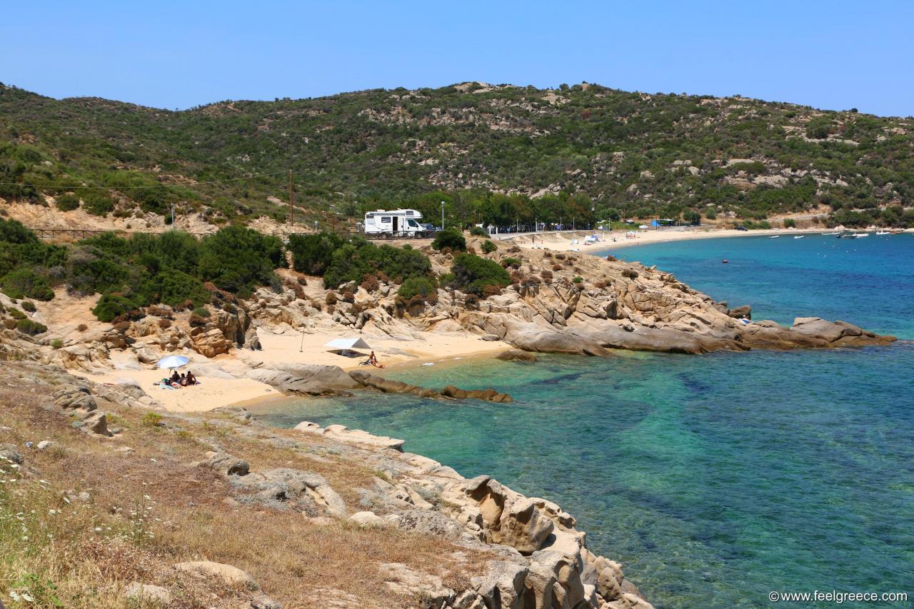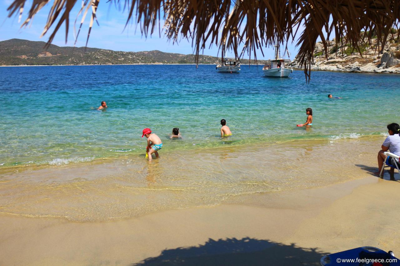 There is plenty of very affordable accommodation and campsites to stay overnight.Its right side is also known as "Ai Giannis" or Linaraki Coast.Whatever you call it, it's a fantastic beach, ideal for family holidays.On the north side of the beach, the water is very shallow and ideal for small children to play in.