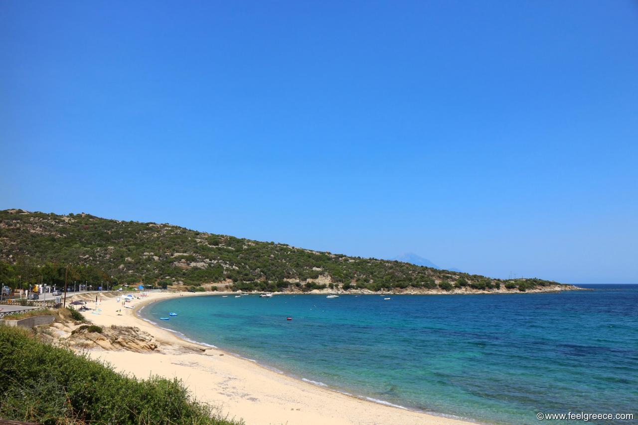 Sykia beach is considered one of the most beautiful in Halkidiki and has shallow waters ideal for water sports and also for families with small children.